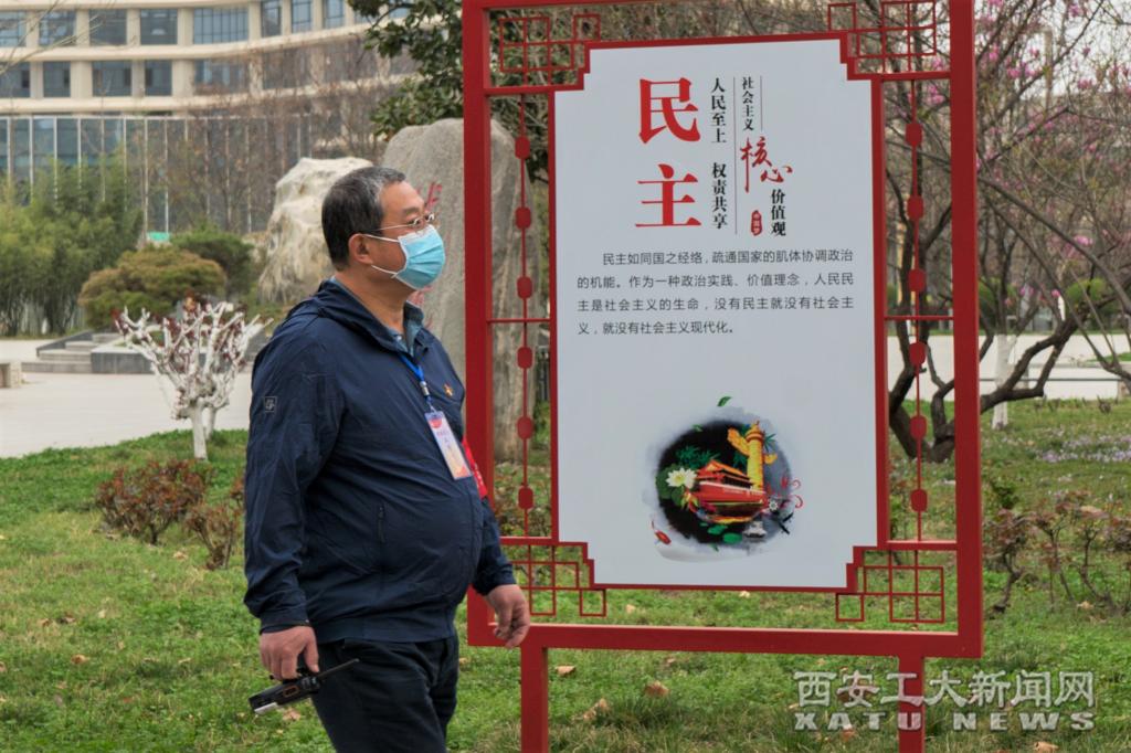 參加“黨員先鋒崗”的趙杰老師,根據保衛處安排,在校園內進行安全巡邏,提醒大家戴好口罩,保持社交距離。這已經是趙杰第二次加入學校疫情防控工作。他說:“好好工作,干一行愛一行精一行,一直都是我的做事原則。能參加到學校疫情防控第一線,覺得自己有用、有價值,就是最幸福的事。”