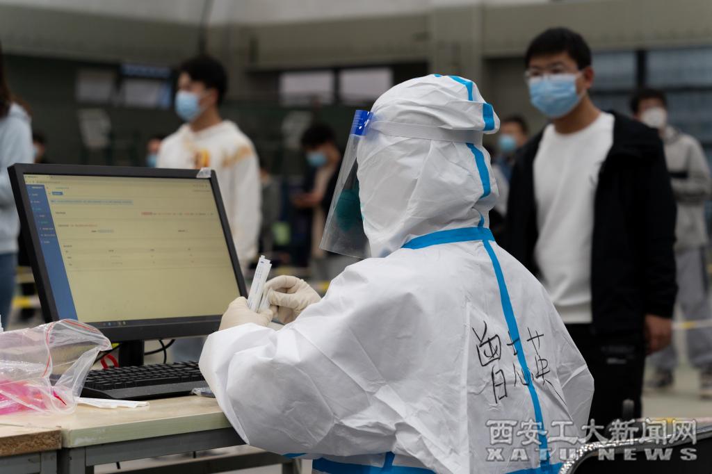 凌晨4點,天還是很黑,四周一片寂靜,西安工業大學體育館的燈光早早地已經亮了起來。體育館里,一群“大白”已準備就緒,即將開始對全校2萬余師生進行核酸采樣。他們中,就有著“黨員先鋒崗”的同志。