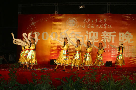 (本網(wǎng)訊)10月26日晚,西安工業(yè)大學(xué)北方信息工程學(xué)院2008年迎新晚會(huì)拉開(kāi)帷幕。西安工業(yè)大學(xué)黨委書(shū)記賽云秀,西安工業(yè)大學(xué)校長(zhǎng)、北方信息工程學(xué)院董事長(zhǎng)劉江南,西安工業(yè)大學(xué)黨委副書(shū)記丁養(yǎng)斌及校長(zhǎng)助理陳樺等領(lǐng)導(dǎo)出席晚會(huì);西安工大雁塔校區(qū)管委會(huì)黨委書(shū)記孫建樂(lè)、常務(wù)副主任孫寶柱應(yīng)邀出席晚會(huì);北方信息工程學(xué)院黨委書(shū)記簡(jiǎn)林根、副書(shū)記王大明、副院長(zhǎng)李健安、薛虹等領(lǐng)導(dǎo)參加了晚會(huì)。