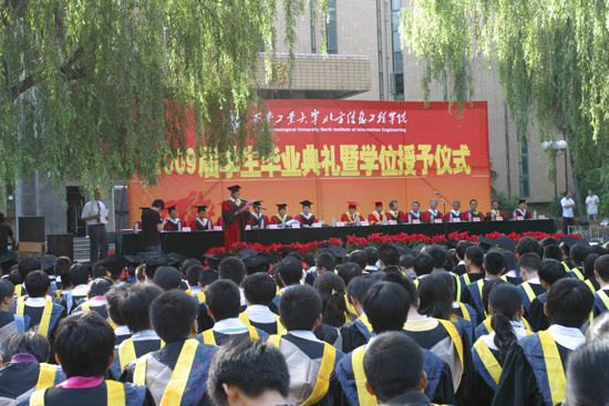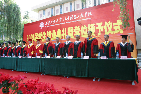 (本網(wǎng)訊)“我們今天是桃李芬芳,明天是社會的棟梁;我們今天是弦歌在一堂,明天要掀起民族自救的巨浪!”在催人奮進(jìn)的《畢業(yè)歌》旋律聲中,西安工業(yè)大學(xué)北方信息工程學(xué)院2009屆學(xué)生畢業(yè)典禮暨學(xué)位授予儀式于6月30日在金花校區(qū)隆重舉行。校長、北信學(xué)院董事長劉江南出席儀式,校教務(wù)、辦公室、學(xué)生處負(fù)責(zé)人應(yīng)邀參加,北信學(xué)院黨委書記簡林根、副書記王大明、副院長李建安、薛虹及學(xué)院各相關(guān)部門領(lǐng)導(dǎo)、教師代表、輔導(dǎo)員等參加了儀式。