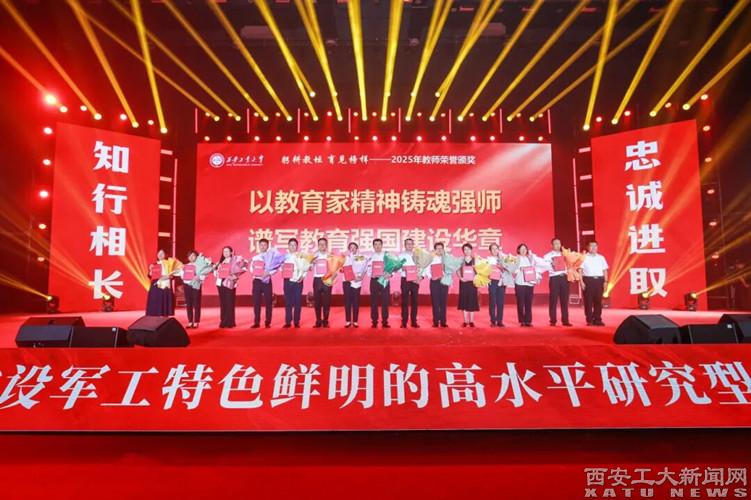 現(xiàn)場還舉行了“躬耕教壇 遇見榜樣”西安工業(yè)大學2025年教師榮譽頒獎儀式,對過去一年中涌現(xiàn)出的優(yōu)秀教師和集體進行表彰。校黨委書記侯成義為獲得第五屆全國高校教師教學創(chuàng)新大賽一等獎、2025年陜西省科學技術(shù)一等獎以及入選省級人才項目等校級以上榮譽的教師及團隊頒發(fā)榮譽證書。校長姚堯為獲得校級師德建設(shè)示范團隊、師德標兵、優(yōu)秀青年教師等榮譽的教師和團隊頒發(fā)榮譽證書。