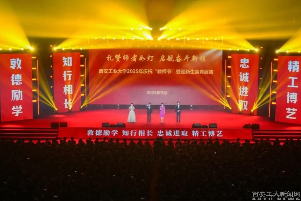 (本網(wǎng)訊)為慶祝2025年教師節(jié),全面落實立德樹人根本任務(wù),大力弘揚教育家精神,展示學校美育成果,迎接2025級全體新生開啟新的奮斗征程。9月10日晚,“禮贊師者如燈 啟航奮斗新程”西安工業(yè)大學2025年慶祝教師節(jié)暨迎新生美育展演在未央校區(qū)大學生活動中心舉行,為全體觀演人員獻上了一場師生共創(chuàng)的藝術(shù)和文化盛宴,也是全校師生同上的一堂弘揚教育家精神、科學家精神和營造尊師重教良好育人氛圍的思政大課。