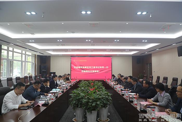 (本網訊)10月12日,榆林高新區黨工委書記、管委會主任張軍一行蒞臨我校調研交流,校黨委副書記、校長姚堯出席座談會,會議由副校長陳建主持。