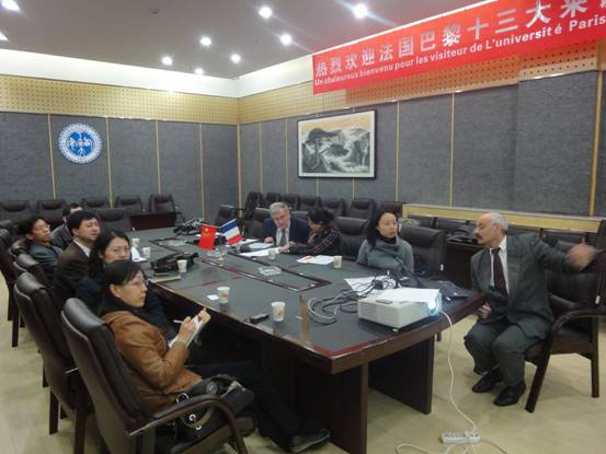 國(guó)際交流與對(duì)外合作處、教務(wù)處及部分院系領(lǐng)導(dǎo)與法方兩位院長(zhǎng)洽談合作交流