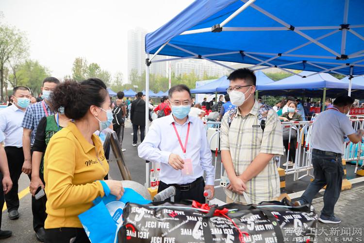 在未央校區(qū)西門新生入校口外,趙祥模同多位前來(lái)送孩子就學(xué)的家長(zhǎng)進(jìn)行了交談,請(qǐng)家長(zhǎng)對(duì)孩子在校的學(xué)習(xí)生活保障條件放心,熱情邀請(qǐng)家長(zhǎng)們?cè)谝咔樾蝿?shì)平穩(wěn)后入校游覽。在學(xué)生公寓,趙祥模查看學(xué)生住宿相關(guān)情況,并同學(xué)生親切交流。在超市、食堂等處,趙祥模就食品安全和物資保障等事宜做了強(qiáng)調(diào)和部署。