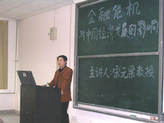 宋元梁教授從三個方面幫助大學(xué)生分析了金融危機對中國經(jīng)濟發(fā)展的影響。首先為大學(xué)生們講解了馬克思主義關(guān)于金融危機和經(jīng)濟危機的相關(guān)理論,就目前美國金融危機的產(chǎn)生背景及其對美國經(jīng)濟的影響進(jìn)行了詳盡的分析,隨后為大學(xué)生們介紹了此次美國金融危機給世界經(jīng)濟帶來的影響,最后結(jié)合中國經(jīng)濟的現(xiàn)狀,客觀地分析了金融危機對中國經(jīng)濟的影響,。
