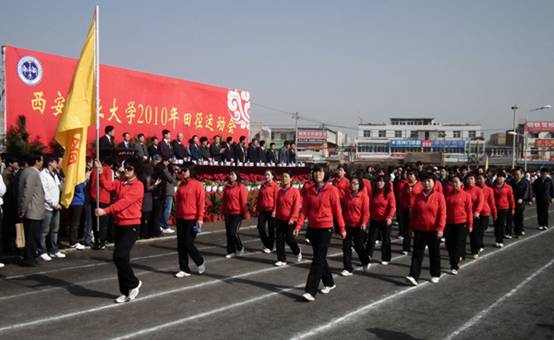 (本網訊)4月23日,西安工業大學2010年田徑運動會在未央校區田徑場隆重召開,學校黨政領導就坐主席臺,校黨委書記賽云秀致詞。