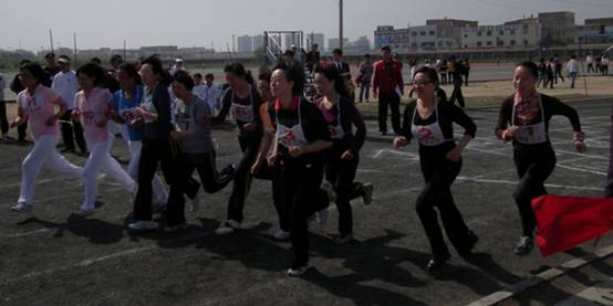 此次運動會是師生共同參與。校工會設置了教職工集體項目和個人項目。有賽龍舟、50米障礙接力、8×50米接力和個人800米跑等,500余人次參加了各項比賽。比賽中,參賽教職工斗志昂揚,賽場氣氛熱烈,你爭我趕,頑強拼搏,最后經過激烈的角逐,機電學院、材化學院、數理系分獲團體一、二、三名,經管學院、外語系、教務科研部門工會獲得體育道德風尚獎。