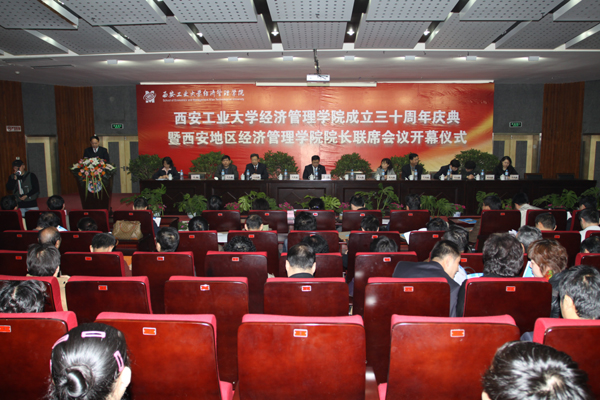 (本網訊)4月16日上午,西安工業大學經濟管理學院成立30周年慶典暨西安地區經濟管理學院院長聯席會議開幕式在未央校區舉行。出席慶典儀式和開幕式的領導和嘉賓有:西安工大黨委書記賽云秀,黨委副書記丁養斌,副校長張君安、劉建勛、劉衛國,工會主席徐雪芹,陜西省社會科學院有關領導,西安地區20余所高校的經管學院院長,各兄弟院系領導,以及西安工大機關各部門領導、經管學院部分退休教師代表、校友代表等。