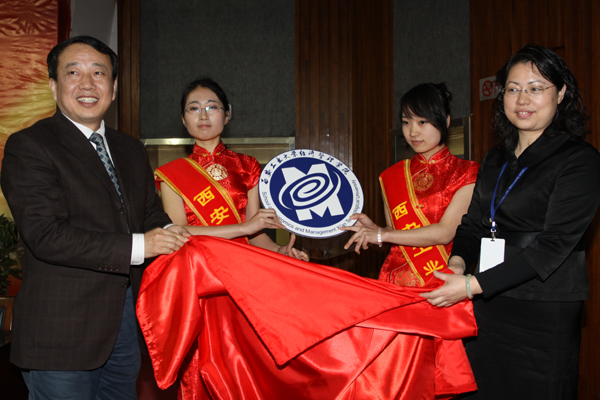 慶典儀式上還舉行了經管學院院徽揭幕儀式。當張君安副校長與李純青院長共同揭下院徽幕布的那一刻,全場掌聲雷動。