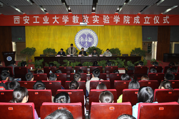 (本網訊)4月14號下午,西安工業大學教改實驗學院成立儀式在未央校區圖書館報告廳舉行。校黨委副書記丁養斌、副校長張君安出席儀式。教務處、學生處、人事處負責人,各院系黨總支書記和教學院長、教改實驗學院全體同學及各院系學生代表參加了儀式。成立儀式由教務處處長、教改實驗學院副院長范新會主持。