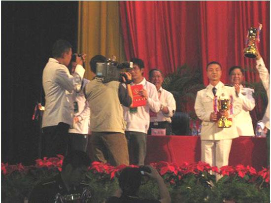 在主席臺(tái)領(lǐng)獎(jiǎng)