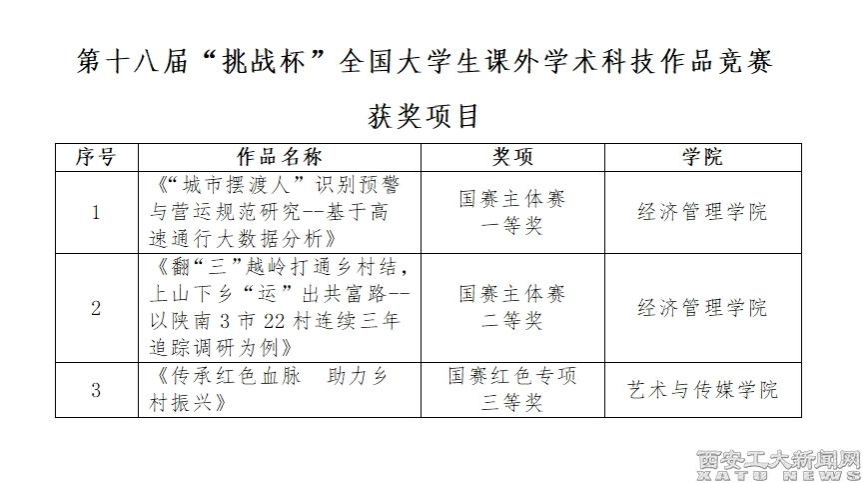 我校在本屆比賽中獲國家級獎項3項,其中主體賽一等獎、二等獎各1項,紅色專項活動三等獎1項,實現國賽一等獎零的突破,獲獎數量創新高,是參加歷屆“挑戰杯”系列賽事以來取得的最好成績,實現了獲獎等級和獲獎數量的“雙突破”。