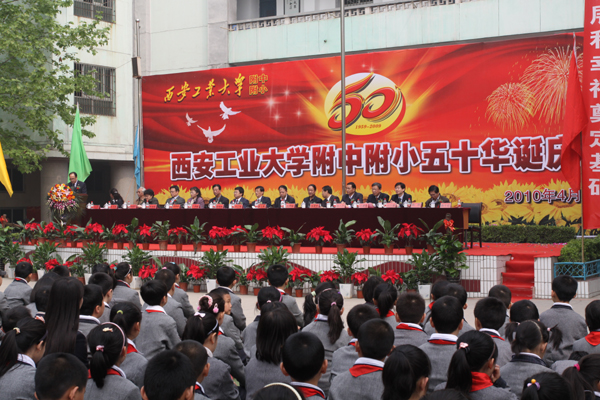 上午10點,慶典大會在莊嚴的國歌聲中開始。附中副校長張剛宣讀了西安工業大學、西安市教育局、碑林區教育局等上級單位發來的賀信。附中校長韓干校發表了熱情洋溢的講話。西安市碑林區教育局局長趙六杰、西安市教育局副局長趙曉林、西安工業大學黨委書記賽云秀分別致辭。