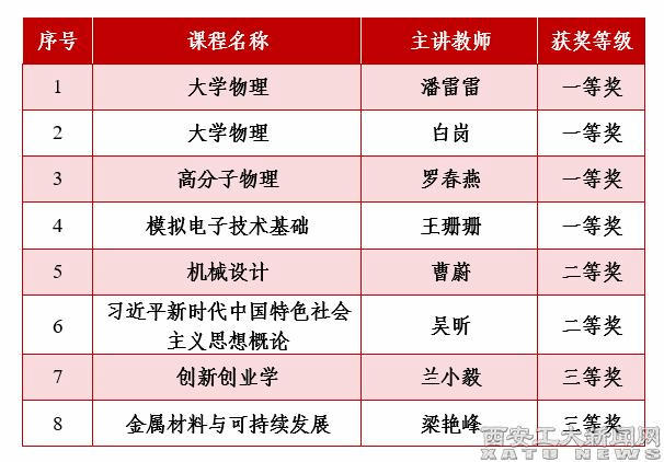 西安工大參加第五屆陜西本科高校教師教學創新大賽獲獎名單