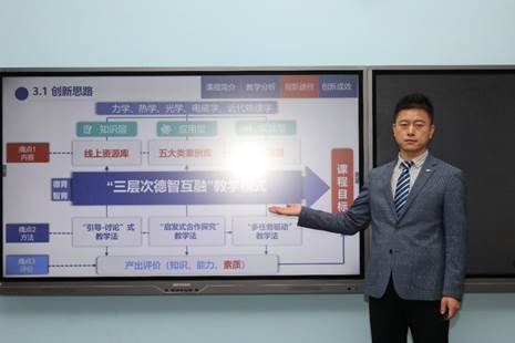 白崗主講的《大學物理》課程,是一門面向工科專業本科生開設的學科基礎課程。建立了“三層次德智互融”課程思政教學新模式,包括“知識+應用+實踐”的大學物理三層次內容體系、“引導—討論式”+“啟發式合作探究”+“多任務驅動”的教學方法、以及“知識+應用+實踐”三層次評價體系,實現了育人效果的量化評價有效落地。