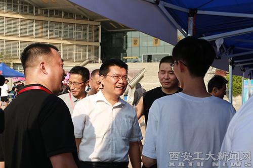 校黨委書記劉衛國、校長姚堯等校領導以及相關部門負責人在報到現場看望了新生,并對迎新工作進行檢查指導。