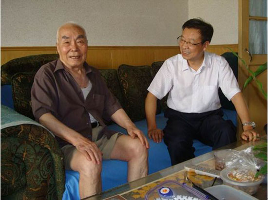劉建勛副校長代表校黨委書記賽云秀和校長劉江南對尹鈞校長表示親切問候,希望年屆90歲高齡的尹鈞校長保重身體,并代表學校感謝尹鈞校長在學校創建時期做出的卓越貢獻。尹鈞校長對學校領導的到來表示感謝,祝福學校發展更進興旺發達,同時表達了對母校故土的深深懷念之情。