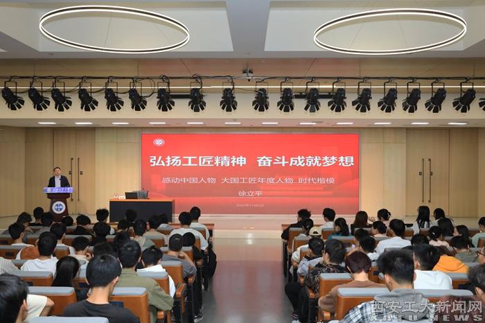 徐立平以“弘揚工匠精神 奮斗成就夢想”為主題,在報告中介紹了我國航天事業的發展歷程以及取得的輝煌成就。他結合自身在航天事業默默堅守30余年的經歷,回顧了航天創業者的艱辛奮進,用最真切的工作案例生動展示了航天人的犧牲、奉獻,詮釋了大國工匠執著專注、精益求精、一絲不茍、追求卓越的工匠精神內涵。他勉勵現場的青年大學生們以夢為馬,逐夢青春,立志民族復興,不負韶華,不負時代,在青春的賽道上奮力奔跑,讓奮斗成為青春最亮麗的底色,讓人生在實現中國夢的奮進中收獲無限精彩。