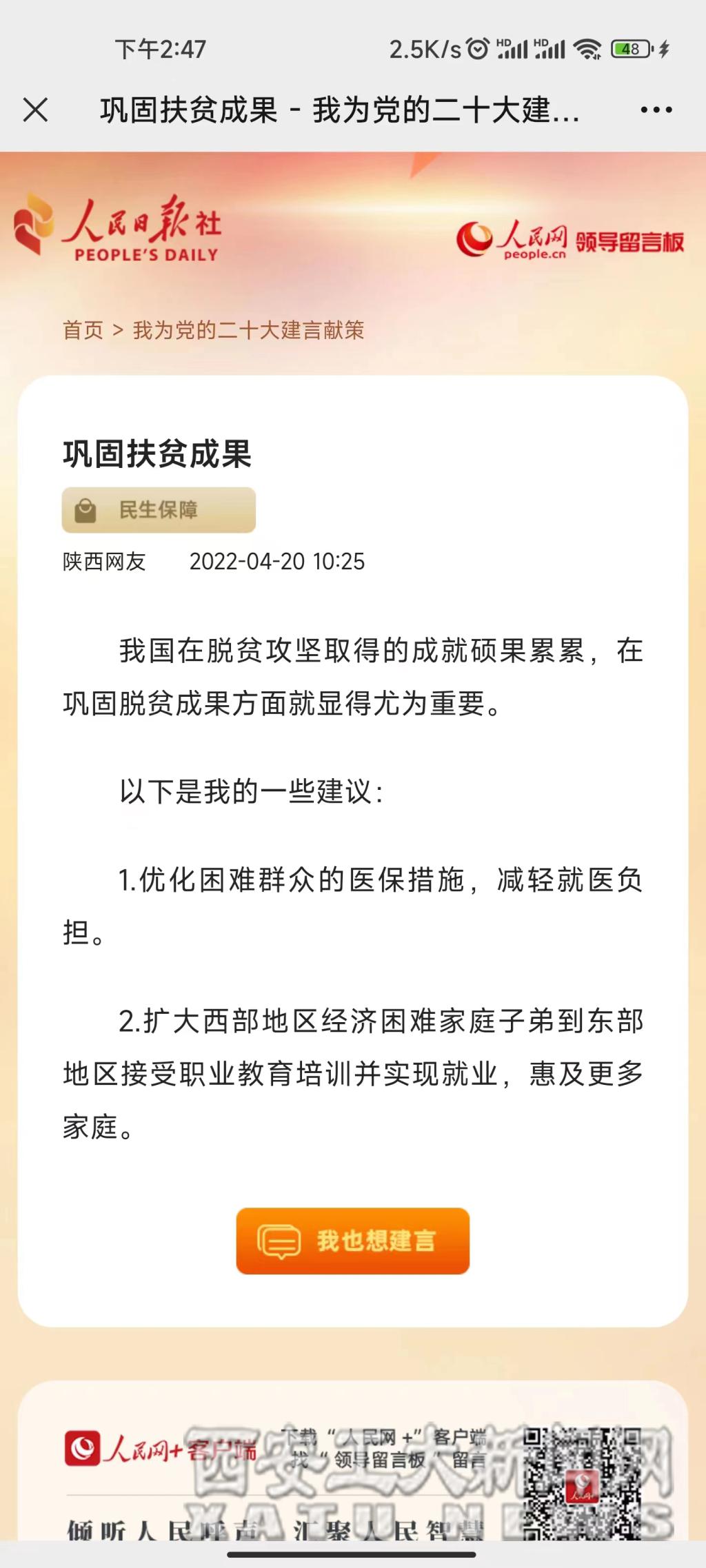 學生第一黨支部黨員屈宇澤在民生保障方面建言:優化困難群眾的醫保措施,擴大西部地區經濟困難家庭子弟到東部地區接受職業教育培訓并實現就業,更好地鞏固扶貧成果。
