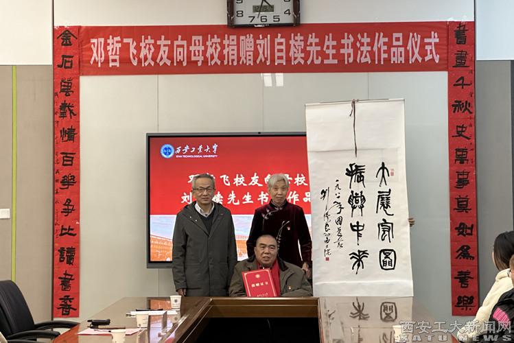 (本網(wǎng)訊)12月19日,78級校友鄧哲飛向?qū)W校捐贈劉自櫝先生書法作品的儀式在圖書館第二會議室舉行。副校長劉卜出席活動。會議由校友總會辦公室主任、教育發(fā)展基金會理事長姚穎主持。