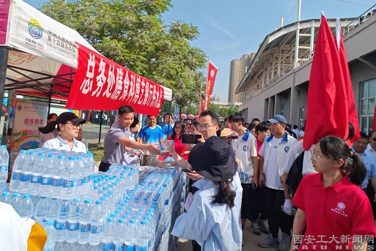 總務處還在運動場周邊設置了愛心供水點,為運動健兒們精心準備了解暑綠豆湯、酸梅湯和瓶裝礦泉水。在供水點,看到從賽場上下來的運動健兒們,食堂工作人員便熱心地為他們遞上了一杯杯清涼。