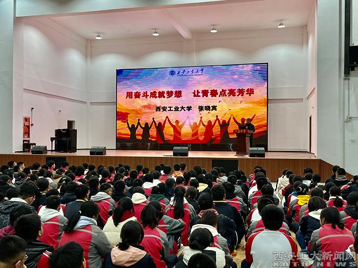 報(bào)告伊始,張曉賓向同學(xué)們介紹了西安工業(yè)大學(xué)的辦學(xué)歷史、學(xué)科優(yōu)勢、人才培養(yǎng)和在陜招生的情況。接著從懷揣夢想、何為大學(xué)、大學(xué)為何、當(dāng)下何為四個(gè)方面為同學(xué)作了一場生動(dòng)的勵(lì)志報(bào)告,報(bào)告中張曉賓結(jié)合西安工業(yè)大學(xué)精神和校訓(xùn)的內(nèi)涵、學(xué)校學(xué)科優(yōu)勢、學(xué)生綜合素質(zhì)和創(chuàng)新意識的培養(yǎng)、校友事跡等,向同學(xué)們介紹了大學(xué)之大、大學(xué)期間學(xué)習(xí)做人做事做學(xué)問的重要新和具體方式方法,引導(dǎo)同學(xué)們樹立遠(yuǎn)大理想,扎實(shí)做好成長中每一件小事。最后,針對距離高考僅有64天的時(shí)間,張曉賓從調(diào)整心態(tài)、夯實(shí)基礎(chǔ)、考前規(guī)劃、正常發(fā)揮等四個(gè)方面向同學(xué)做了方法上的指導(dǎo),并預(yù)祝同學(xué)都能考上心儀的大學(xué)。