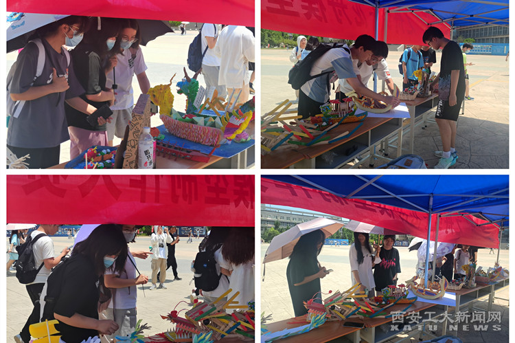 經(jīng)過初期篩選,有48組作品進入線上投票環(huán)節(jié),全校師生近8000人次參與投票。6月2日,端午佳節(jié)到來之際,特選拔優(yōu)秀作品在經(jīng)緯廣場展出。前來參觀展覽的師生絡(luò)繹不絕,在諸多別具一格的龍舟作品前駐足觀看,時而凝神思索,時而熱烈討論,現(xiàn)場氛圍活躍。