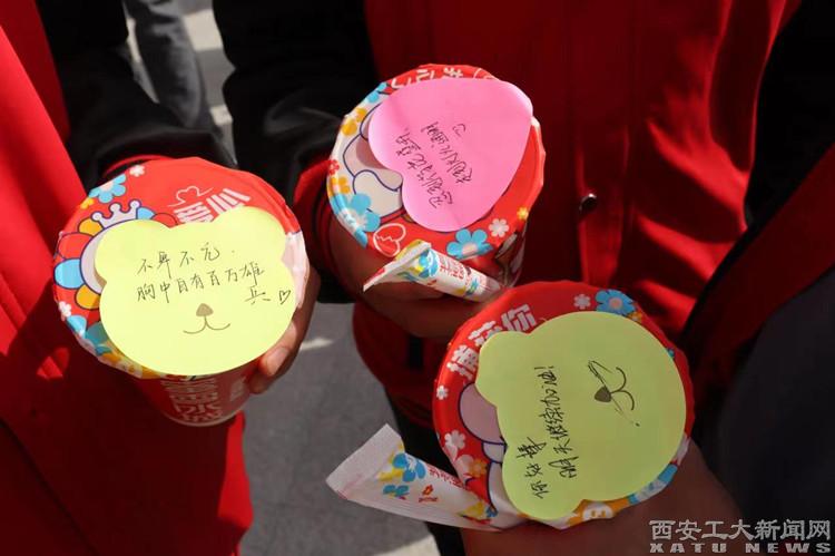 “前路是星辰大海”“一起相約金色未央”“仙大的鴨子湖等待你的到來”這些溫馨向上的祝福在這個春天出現在西安工大的奶茶杯上,這是西安工業大學本科生院(教務處)招生辦公室為進校參觀交流的中學師生們精心準備的禮物。中學生們把愛意奶茶捧在手心,西安工業大學的情誼也在奶茶中甜蜜流淌,大學的種子與奮力成長的期待將會化作長足動力,激勵中學生們不斷進步。