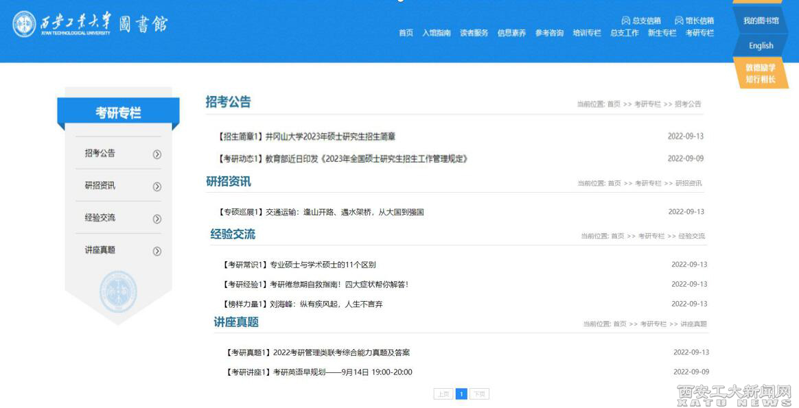 圖書館對網絡上魚龍混雜的考研信息服務網站進行了網絡調研,與考研成功“上岸”學生開展了電話訪談,在選取權威可靠的信息來源的同時,確定了考研專欄的四個版塊:招考公告、研招咨訊、經驗交流、講座真題。主要發布動態類信息(招生簡章、考研相關政策等),助考類信息(講座、真題、榜樣、經驗等),常識類信息(考研名詞、熱門專碩等)。為了讓發布的考研信息更有針對性,圖書館一方面對我校近三年考研成功“上岸”錄取院校進行了梳理,針對性地追蹤這些院校的招生簡章、考試大綱等考研信息并優先發布;另一方面優先收集挖掘我校學生考研成功的案例。這些舉措是為了有效提升我校學生的考研成功率和提振信心。在這個過程中得到了我校研究生院和黨委學生工作部的大力支持。