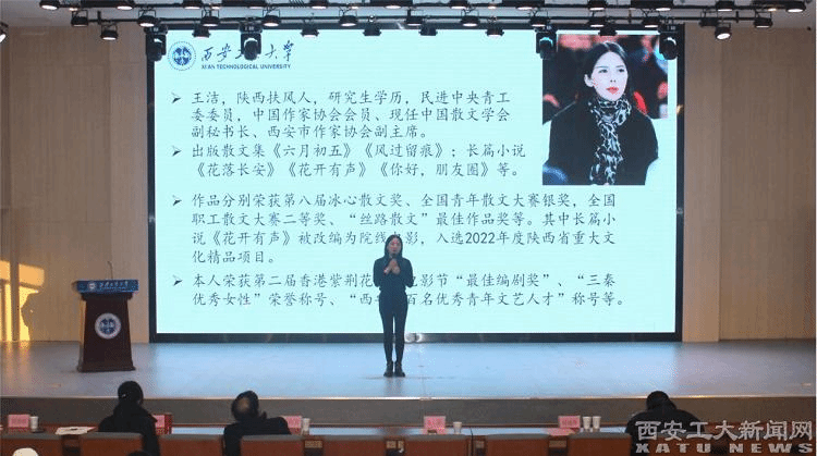 (本網訊)近日,由西安工業大學團委、文學院主辦,西部電影藝術與文化品牌發展研究基地、陜西當代文學與藝術研究中心承辦的支教電影《遠山花開》觀影交流會在我校雙創樓報告廳舉辦。西安市作協副主席、《遠山花開》小說原著與電影編劇王潔,我校統戰部部長雷曉青,圖書館副館長李紅巖受邀出席。活動由文學院副院長吳妍妍主持。