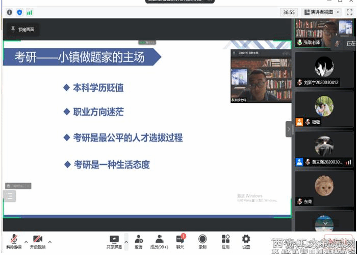 張老師結(jié)合自身經(jīng)歷,從本科學(xué)歷貶值、職業(yè)方向迷茫、考研公平性等方面展開(kāi)分析為什么選擇考研;圍繞學(xué)歷提升,機(jī)會(huì)、資源、人脈和平臺(tái)的拓展,未來(lái)就業(yè)的多樣性等方面介紹了考研能給我們帶來(lái)什么;結(jié)合考研人數(shù)、考生質(zhì)量、分?jǐn)?shù)線、報(bào)錄比數(shù)據(jù)等方面分析了當(dāng)前考研形勢(shì)和現(xiàn)狀;結(jié)合自身備考經(jīng)驗(yàn)以及身邊考研成功案例,圍繞備考時(shí)間、方式方法、院校選擇等方面介紹了如何成功備戰(zhàn)考研。