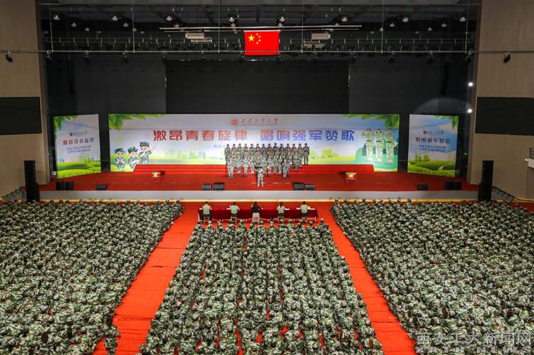 (本網訊)8月26日晚,西安工業大學2022級本科生軍訓“激昂青春旋律,唱響強軍贊歌”合唱比賽在大學生活動中心舉行。本次比賽共選拔8支隊伍參加,各營指導員及一名專業聲樂老師出席本次比賽并擔任評委。全體教官、帶訓輔導員及2022級本科生近4600人現場觀看。