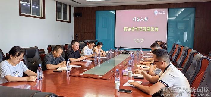 (本網訊)為扎實做好書記校長訪企拓崗促就業專項行動,深化校企合作,促進畢業生高質量就業,7月12日,電信學院召開引企入校校企合作交流座談會。西安工業大學黨委副書記梁云鶴,電信學院黨委書記易超、黨委副書記王利軍,陜西文都教育科技有限公司、蘇州知行??萍加邢薰镜?家企業領導及畢業班輔導員參加會議,會議由王利軍主持。