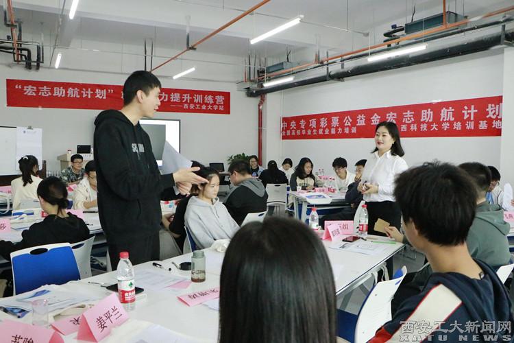 此次訓練營以轉變就業態度、提升就業能力、增強就業信心作為課程目標,邀請陜西科技大學宏志助航計劃就業能力培訓基地老師進行授課,共開設就業心態準備、職業目標與搜集信息、建立網絡、制定計劃、求職技能提升以及面試技巧與求職禮儀五個模塊課程,采取案例分析、小組活動、團體輔導、模擬面試活動等多種方式展開。