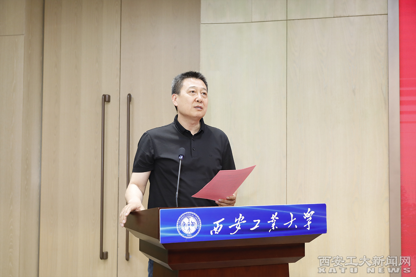 機電學院研究生代表葛星辰發言,他講述了抗疫期間,義務服務者們向戰而行、傾情奉獻的戰“疫”精神和團結堅強、服務師生的感人事跡。他代表研究生疫情防控服務隊隊員們表態,將堅守服務初心,牢記使命擔當,真誠服務師生,繼續以實際行動守護好西安工大校園的平安美好。