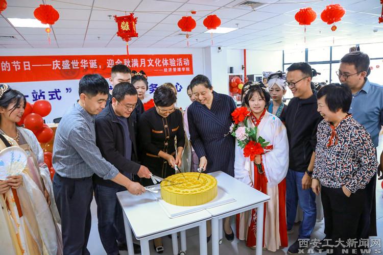 “一站式”學(xué)生社區(qū)服務(wù)中心大廳內(nèi)設(shè)有飛花令、猜燈謎、手工月餅、手書祝福、撫琴邀月等活動環(huán)節(jié)。西工版“盛唐密盒寶藏男孩”用幽默風(fēng)趣、生動形象的語言向在場師生講解了中秋節(jié)的來歷、起源及各種風(fēng)俗,感受中華傳統(tǒng)的無限魅力。手繪團(tuán)圓展臺上,經(jīng)管學(xué)院會計(jì)學(xué)專業(yè)學(xué)生牛麗娟正在和小伙伴們用繪畫展現(xiàn)中秋特色:“我畫的是國畫,用五顏六色的水彩畫出對祖國的美好祝福,送出對中秋佳節(jié)的真摯祝福。”