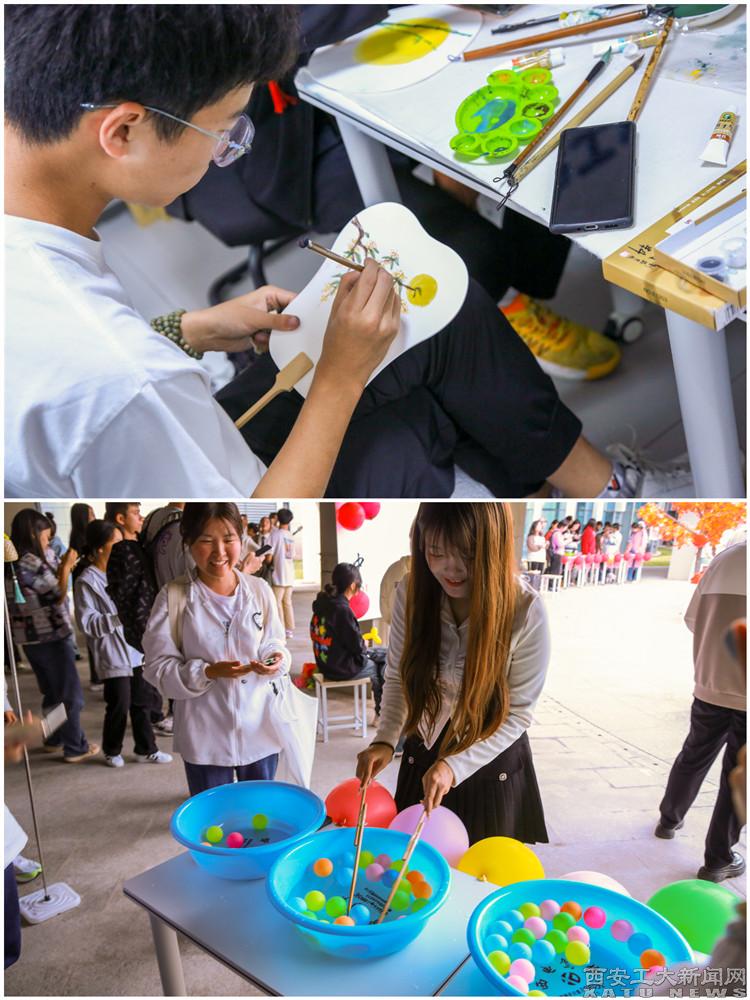本次文化體驗(yàn)活動共設(shè)室內(nèi)游藝、文藝表演、室外游藝三個(gè)部分。各游藝區(qū)展臺前人頭攢動,同學(xué)們紛紛體驗(yàn)帶有中秋及國慶元素的活動,更進(jìn)一步走進(jìn)傳統(tǒng)文化,寄托中秋美好祝福。