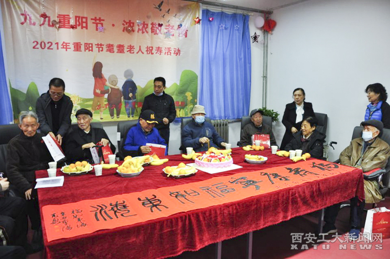 (本網訊)年年歲歲賀重陽,桑榆未晚桂猶香。為弘揚中華民族“尊老、敬老、愛老”的傳統美德,10月14日“重陽節”上午,離退休工作處舉辦了以“九九重陽節 濃濃敬老情”為主題的重陽節耄耋老人祝壽活動,向各位老壽星致以崇高敬意和誠摯的節日祝福,感謝離退休老同志為學校作出的貢獻,并祝愿壽星們度過一個健康安詳的晚年。7位90歲以上的老壽星參加了此次活動。