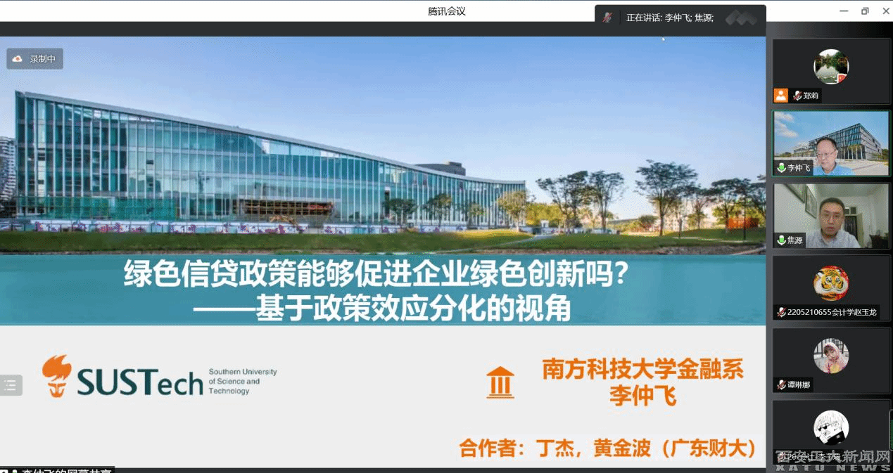 李仲飛介紹了在建設“美麗中國”背景下,圍繞“2030碳達峰、2060碳中和”的“雙碳”目標,基于環境保護與經濟發展之間的兩難選擇,采用DID方法分別檢驗綠色信貸政策對重污染企業和節能環保企業綠色創新的影響,以期將金融體系中的綠色信貸為引導,促進企業綠色環境創新及企業的轉型升級。