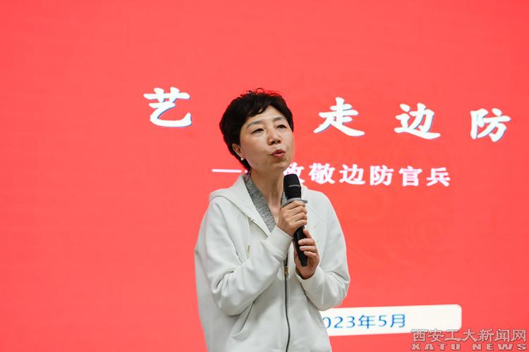講堂上,陜西省思想政治工作重點研究基地專家張津波以《藝術走邊防》為題,從“重走總書記視察之路、站在哨所上傾情獻藝、參觀學習當地紀念館、與邊防戰士聯手表演”等四個方面,分享了自2018年起,“實踐教學到基層,藝術服務走邊防”慰問團先后赴新疆、云南、內蒙古、黑龍江等地為駐邊部隊送去文藝匯演的精彩歷程。通過一張張珍貴的照片,為我們帶來了一個個備受感動的故事:為部隊運送了17年物資的“鐵牛”阿黑;一年116天以上都在刮八級大風的“石頭山”;戰士們親手包裹的“野花束”;還有一封來自19歲戰士的《給媽媽的日記》……在張津波飽含深情的講述下,一個個令人肅然起敬的人物、一段段讓人感觸頗深的故事躍然眼前,讓現場師生備受感染。