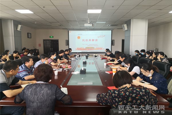 (本網訊)為廣泛開展普法工作,讓《民法典》走進職工心中,6月23日,圖書信息黨總支聯合圖書館邀請我校法律顧問金博副教授做《民法典》輔導學習報告,圖書館、信息技術中心和學報編輯部全體人員近70人參加了學習。