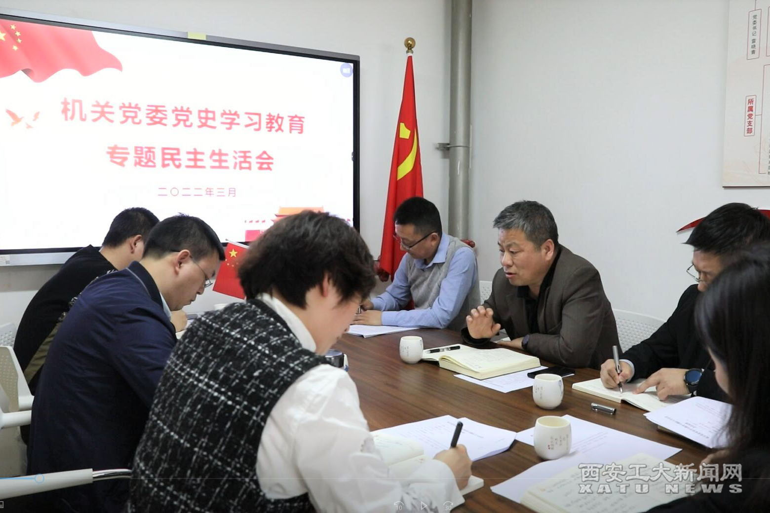 (本網訊)3月10日,機關黨委召開黨史學習教育專題民主生活會,校黨委副書記王軍周到會指導。機關黨委書記雷曉青主持會議。