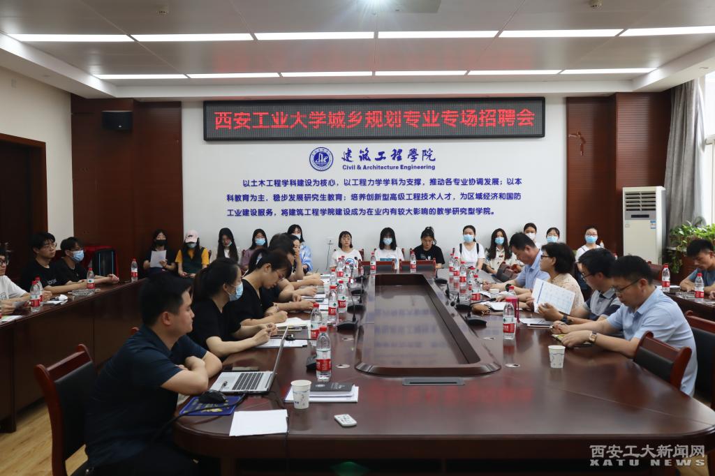 (本網訊)為了推動城鄉規劃專業學生順利就業,為學生提供更多就業機會,6月9日,建筑工程學院邀請了4家城規專業用人單位在工四-302舉行專場招聘會。廣州博廈建筑設計研究院、錦繡秦嶺規劃設計集團有限公司、西安中大規劃設計研究院有限公司和西安中策資訊科技有限責任公司4家單位到學院組織招聘,來自城規專業的30多名同學參加了招聘會。建筑工程學院黨委書記劉慧萍、黨委副書記賈建利出席了招聘會,城鄉規劃系主任楊大偉、教師代表杜斌、畢業班輔導員何鵬程參加了招聘會。