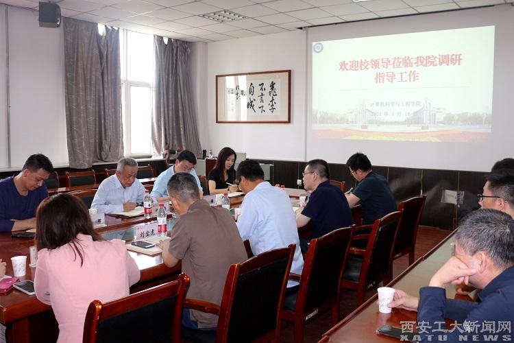 (本網(wǎng)訊)4月18日,副校長(zhǎng)劉卜、人事處處長(zhǎng)高巍、黨委教師工作部副處長(zhǎng)郭軍一行蒞臨計(jì)算機(jī)科學(xué)與工程學(xué)院開(kāi)展調(diào)研,并與學(xué)院領(lǐng)導(dǎo)班子成員、各教研主任進(jìn)行座談交流。座談會(huì)由計(jì)算機(jī)科學(xué)與工程學(xué)院黨委書(shū)記楊正強(qiáng)主持。