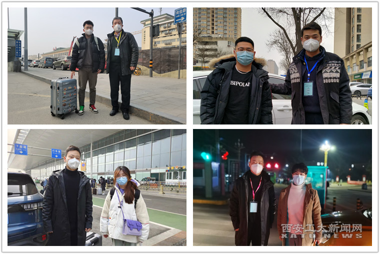 冷冽的寒風中,“愛心車隊”的老師們提前到達約定地點,幫助學生搬運行李、叮囑帶好物品,安全準時將學生護送到火車站、北客站、機場或西安市內的小區中,路上還不忘提醒學生注意安全,做好個人防護,在家休息之時不忘學習。
