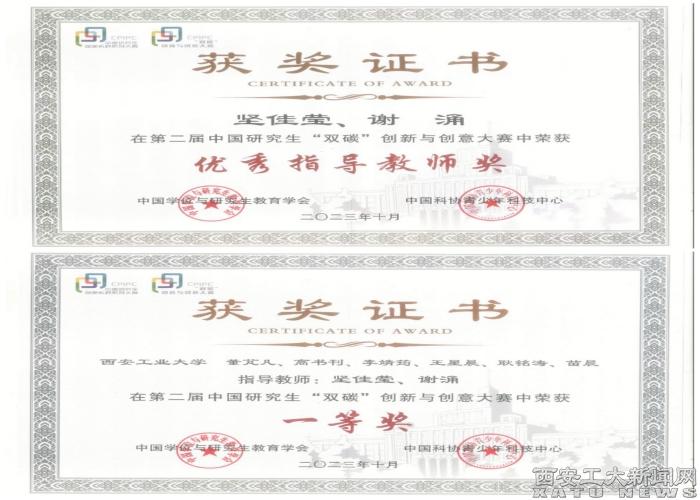 (本網訊)10月29日,中國研究生創新實踐系列大賽——第二屆中國研究生“雙碳”創新與創意大賽決賽在東北林業大學落下帷幕。我校斬獲全國一等獎、二等獎和三等獎各1項,1名教師獲評“優秀指導教師”。哈爾濱新聞網對西安工業大學、西安交通大學和東北林業大學的3個一等獎項目進行了重點報道。