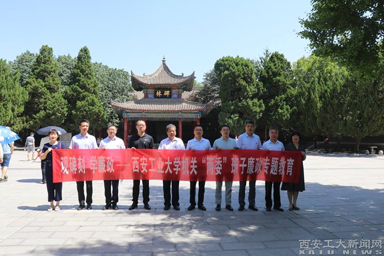 (本網訊)為進一步加強黨風廉政建設,全面履行好管黨治黨主體責任,幫助新當選的“兩委”班子成員增強政治“免疫力”、筑牢思想“防火墻”,6月29日,機關新一屆“兩委”班子成員赴西安碑林廉政教育基地開展“觀碑刻 學廉政”專題教育,校黨委副書記王軍周參加。