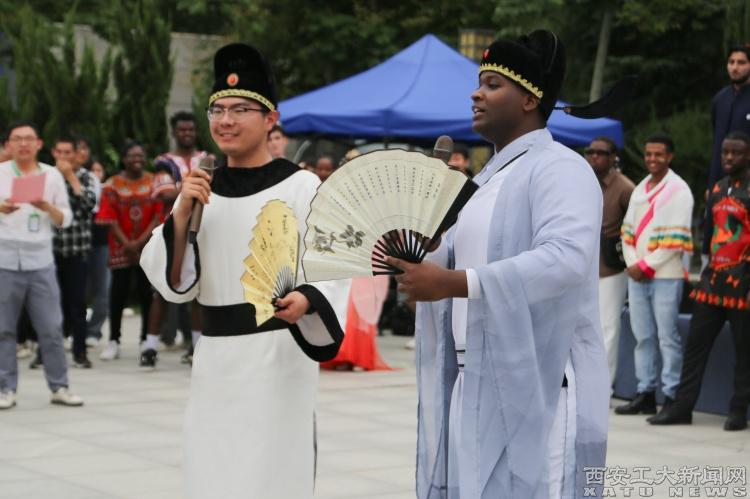 留學(xué)生代表美麗發(fā)言,她分享了在西安工業(yè)大學(xué)學(xué)習(xí)漢語的經(jīng)歷,希望大家通過此次活動感受各國文化的魅力。