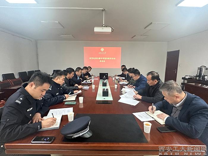 余俊傳達了《西安工業(yè)大學防范電信詐騙專項宣傳教育活動方案》,對落實防范電信詐騙專項宣傳教育活動的具體任務和責任分工進行了明確。